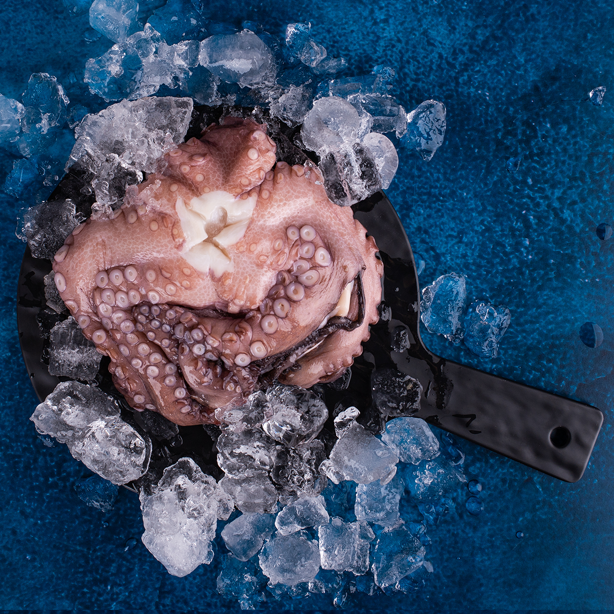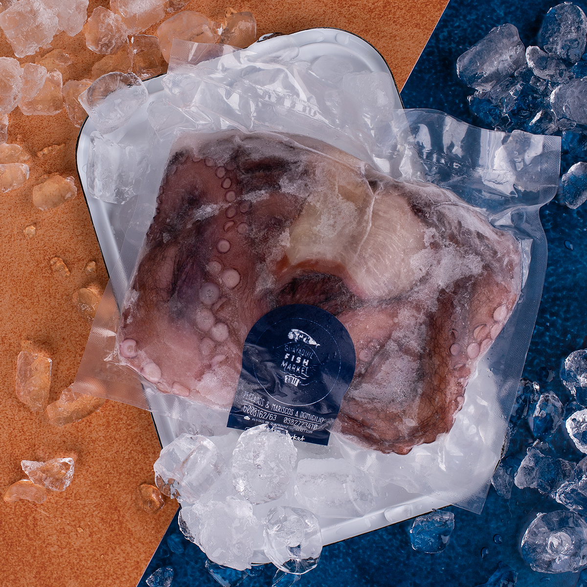 Nuestro pulpo es capturado en las costas del Ecuador, con lo que apoyamos a nuestros pescadores artesanales. Llega fresco a nuestra planta donde es procesado y congelado individualmente. Presentación pulpo entero sin ojo y sin pico empacado individualmente.
